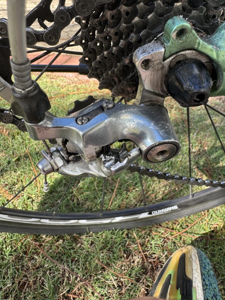 This is quite an unusual break too, right along the top pin of the outer parallelogram link. Something i’d never seen before in all my years owning and fixing bikes.